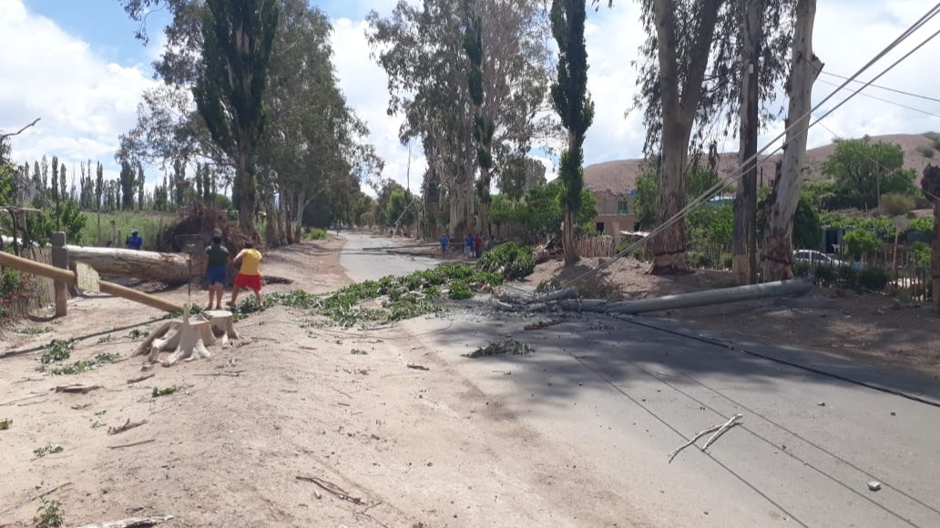 Postes Y Arboles Caidos Tras Un Fuerte Viento Zonda En Calingasta
