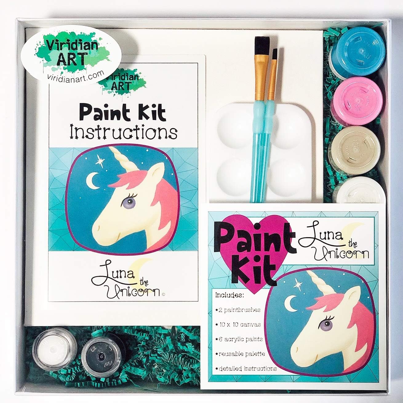 Amazon Com Unicorn Paint Kit Art Lesson In A Box Diy Art Craft Kit Best Seller Art Gift For Kids Age 6 Up Step By Step Photos Instructions 10x10 Canvas Kid
