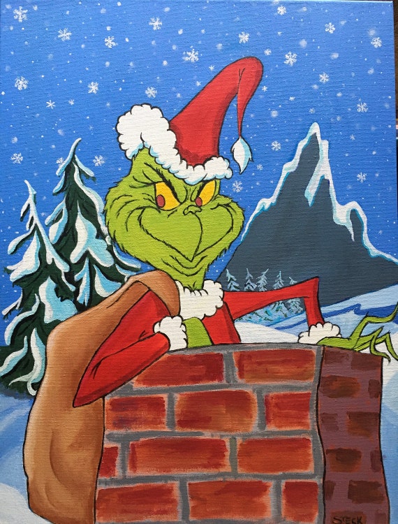 Grinch Canvas Acrylic Painting How The Grinch Stole Christmas Dr Seuss Whoville Ebay
