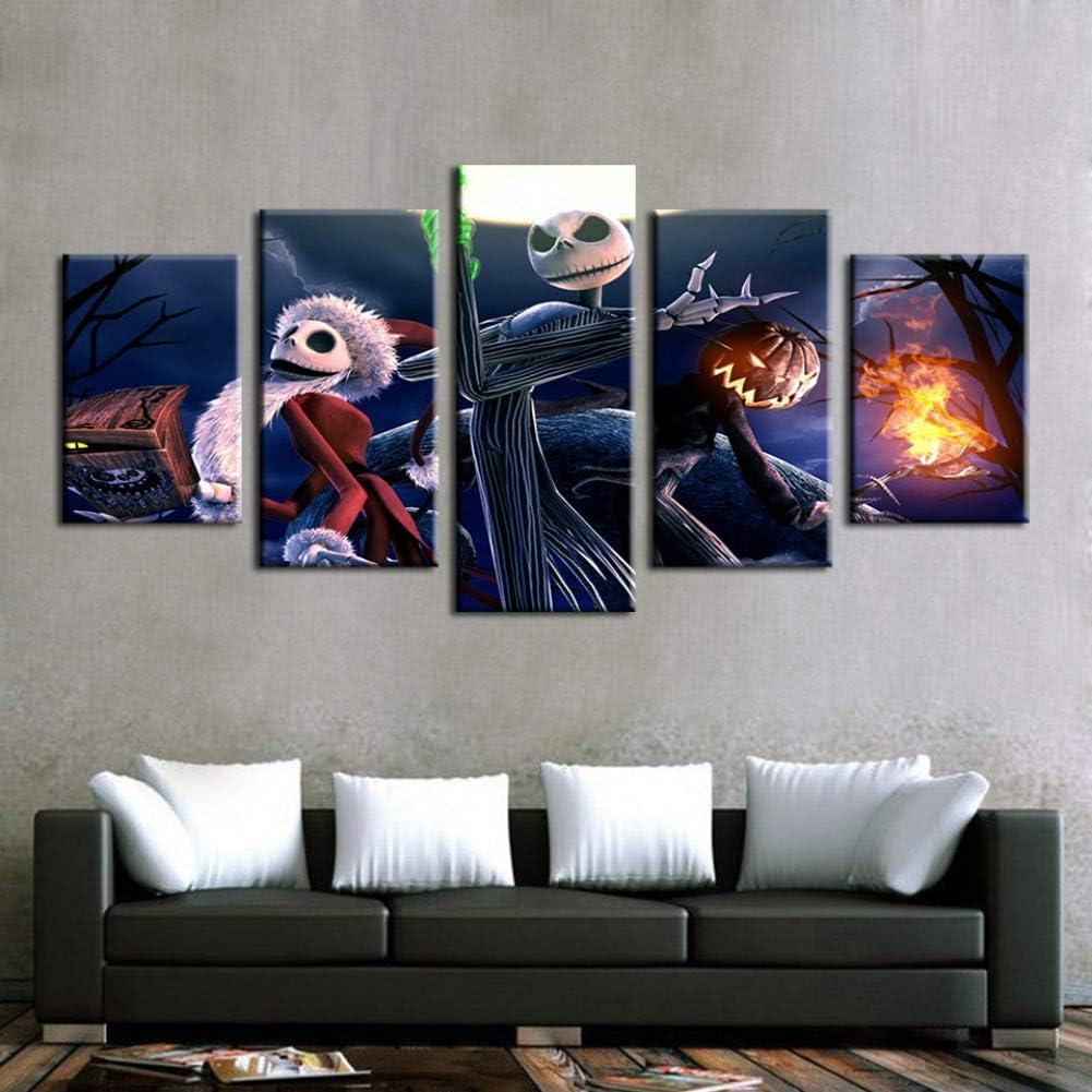 Amazon Com Wpfzh Five Canvas Paintings Modular Canvas Pictures Wall Art 5 Piece Nightmare Before Christmas Painting Print Halloween Poster Living Room Home Decor Posters Prints