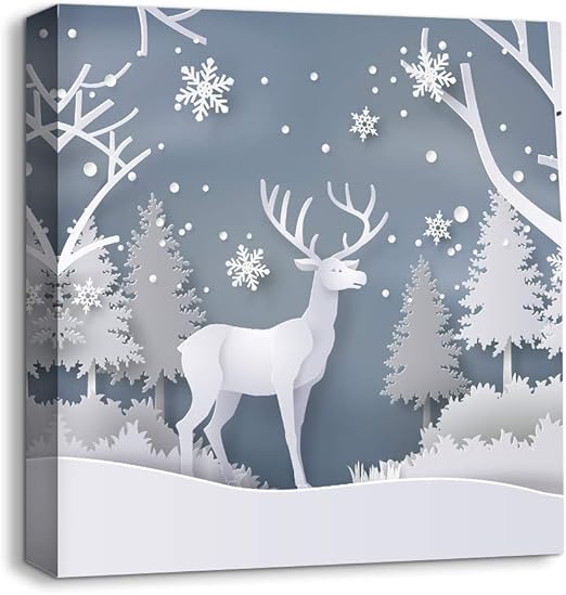Amazon Com Nwt Idea4wall Canvas Wall Art Snow Deer Merry Christmas Painting Artwork For Home Prints Framed 12x12 Inches Posters Prints
