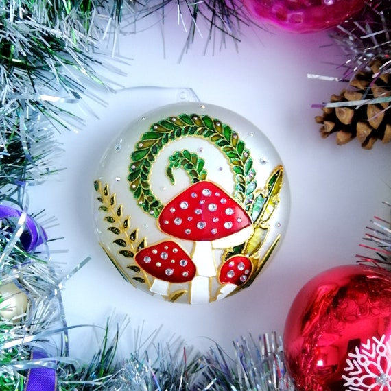 Mushroom Christmas Ornament Hand Painted Handmade Christmas Etsy