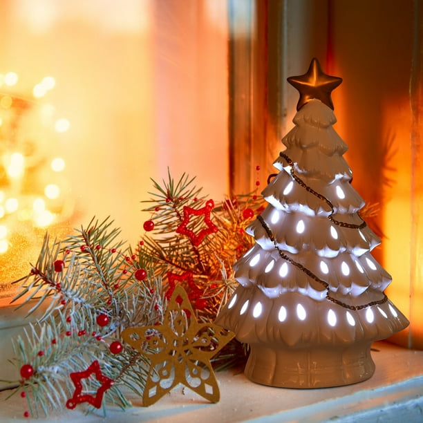 11 Ceramic Tabletop Christmas Tree White Hand Painted Battery Powered W Led Colorful Lights Walmart Com Walmart Com