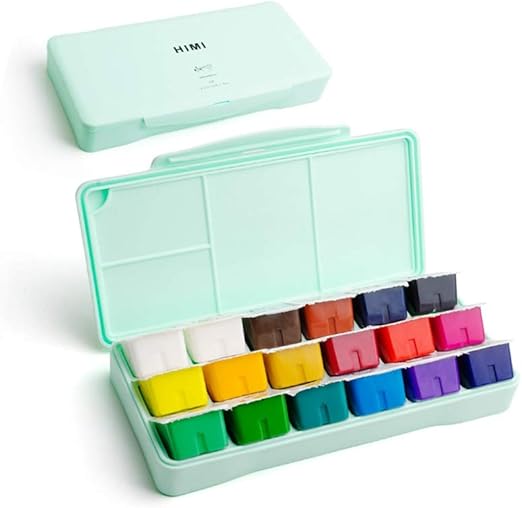 Jypim Gouache Juego De Pigmentos De 18 Colores X 30 Ml Diseno Unico De Taza De Gelatina Con Caja De Toner Portatil Ideal Para Aceite Pintura Acrilica Y Otros Verde Menta