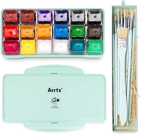 Amazon Com Arrtx Gouache Kit De Pintura De 18 Colores X 1 0 Fl Oz 10 Piezas De Cerdas De Cerdo Diseno Unico De Jalea Con Estuche Portatil Gouache Perfecto Para Aceite Pintura Acrilica