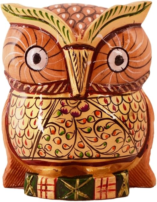 Amazon Com Purpledip Buho De Madera Con Fina Oro Pintura En Miniatura Idol Regalo Vaastu Feng Shui Amuleto De La Buena Suerte 11254 Home Kitchen