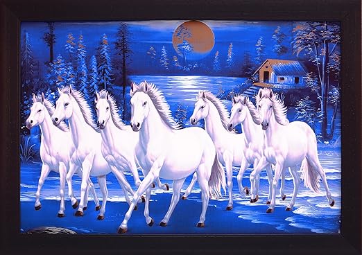 Amazon Com Siete Caballos Blancos Corriendo En Piso Una Pintura De Poster Debe Para Decoracion De Pared Y Vastu Proposito Home Kitchen