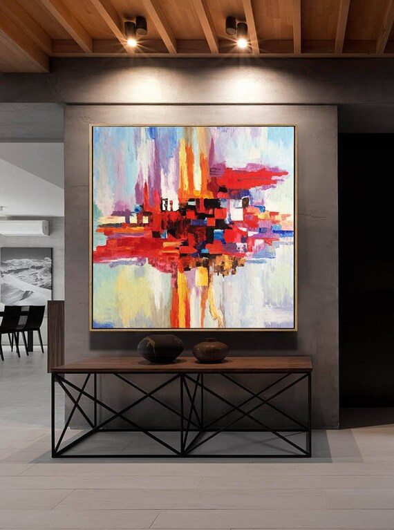 Large Original Wall Art Colorful Abstract Painting Red Etsy