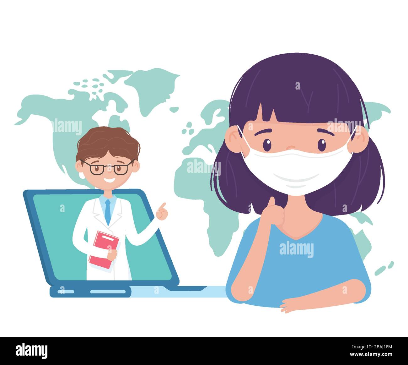 Health Online Consultation Doctor And Patient Girl On Laptop Covid 19 Coronavirus Vector Illustration Stock Vector Image Art Alamy