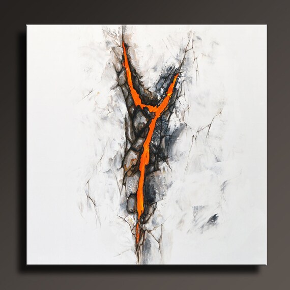 Original Abstract Painting 36 White Gray Black Orange Etsy