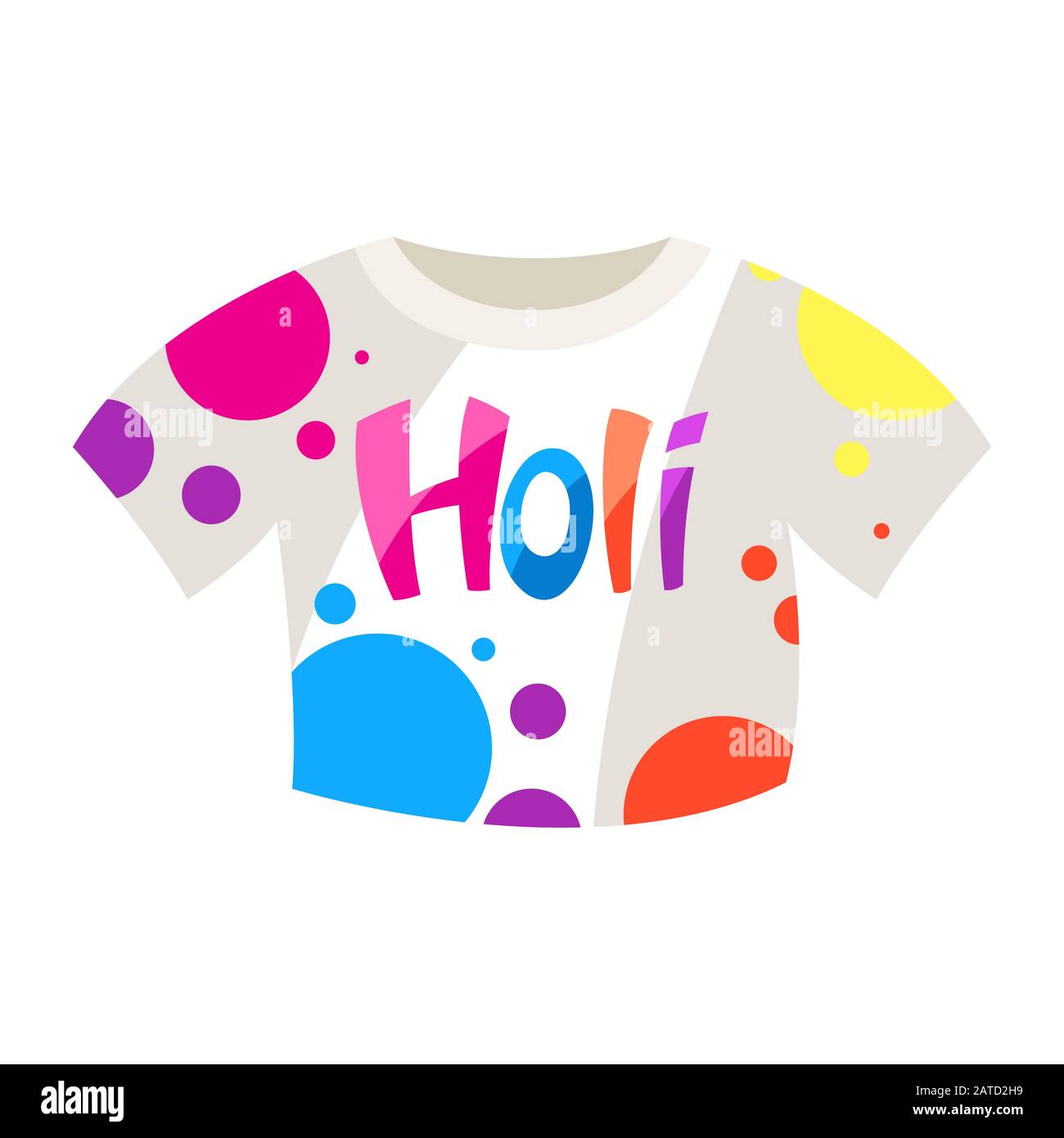 Ilustracion De Holi Vacaciones Festival Indio De Colores Colorida Letra Con Confeti Y Camiseta Blanca Con Mancha De Pintura Sobre Fondo Blanco Feliz Tarjeta De Felicitacion Holi Cartel Pancarta Ilustracion Vectorial Abstracta