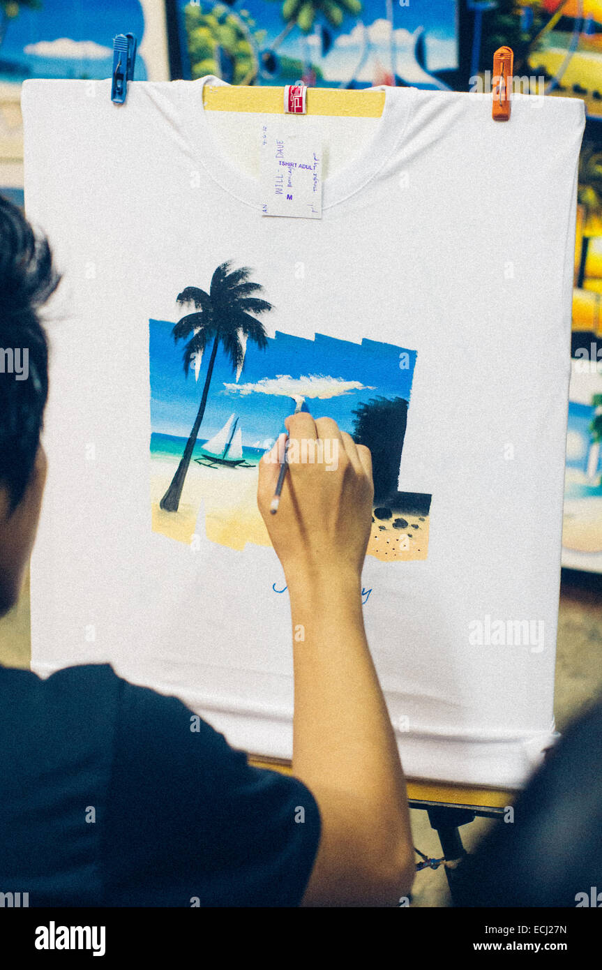 Artista Es La Pintura Sobre Una Camisa Como El Diseno La Foto Es Tomada En Boracay De Filipinas Fotografia De Stock Alamy
