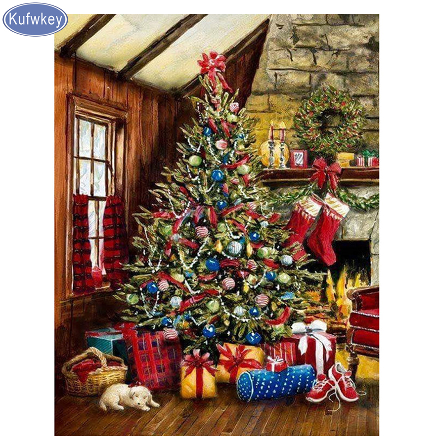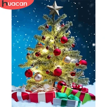 Huacan Paint By Number Christmas Hand Painted Painting Art Gift Diy Pictures By Numbers Tree Kits Drawing On Canvas Home Decor Leather Bag