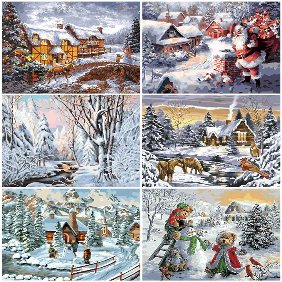 Azqsd Diy Christmas Gift Paint By Number Canvas Painting Kits Winter Landscape Coloring By Numbers Snowman Home Decoration Paint By Number Aliexpress