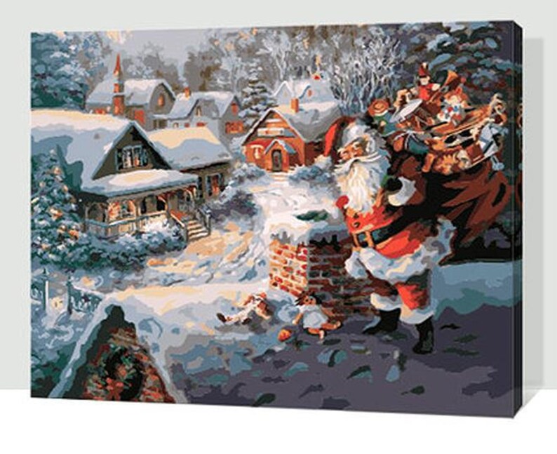Amazon Com Digital Diy Christmas Scenery Oil Picture Painting Coloring By Numbers On Linen Canvas Xmas Wall Art Decoration 40 X 50cm