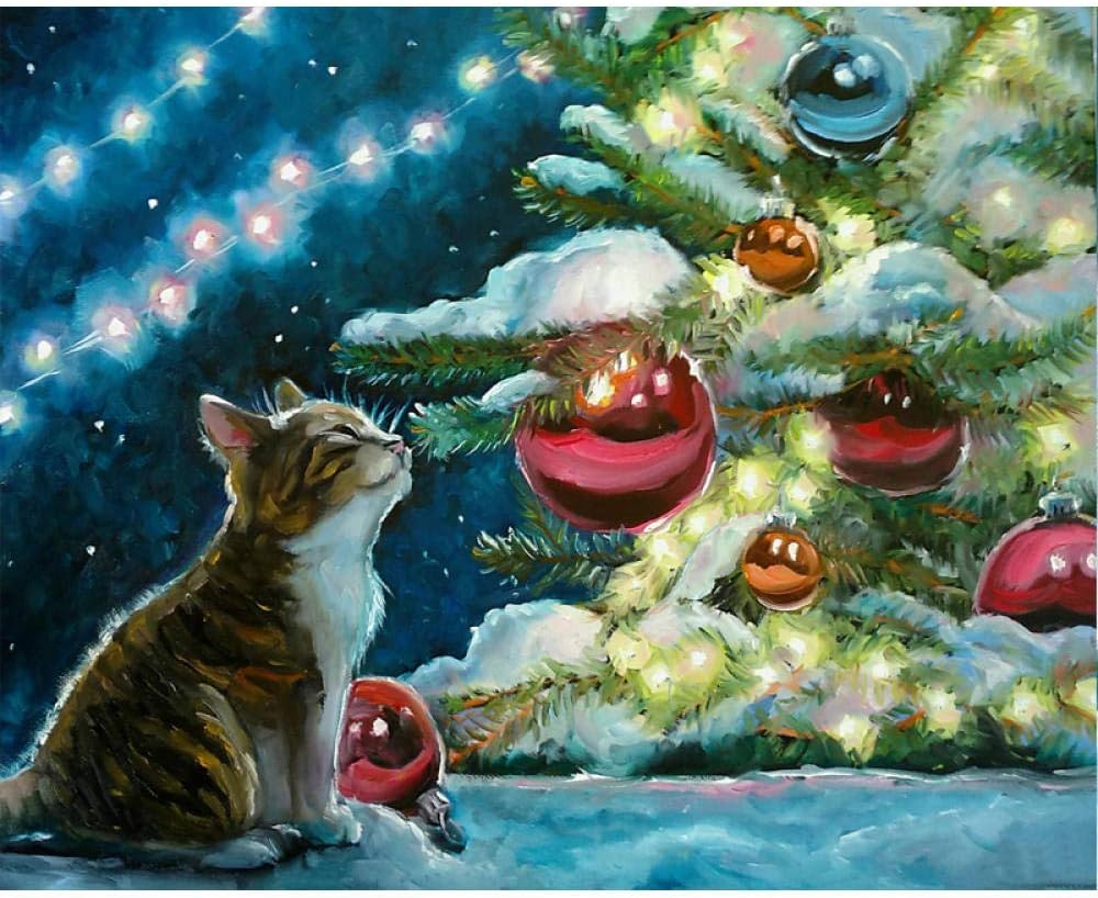 Amazon Com Painting By Numbers Cat Christmas Tree With Brushes And Acrylic Pigment Diy Canvas Painting For Adults Beginner 40x50cm Frameless