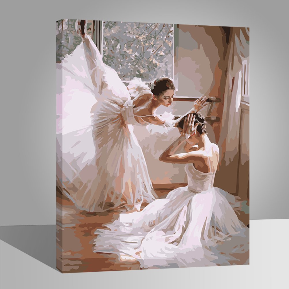 16 20 Pulgadas Con Marco De Madera Boshun Pintar Por Numeros Para Adultos Ninos Pintura Por Numeros Con Pinceles Y Pinturas Decoraciones Para El Hogar Bailarina Abstracta