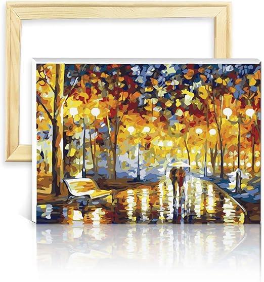 Decalmile Pintura Por Numero De Kits Diy Pintura Al Oleo Para Adultos Ninos Noche Lluviosa Romantica 16 X 20 40 X 50 Cm Con Marco De Madera Amazon Es Hogar