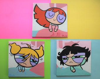 Powerpuff Girls Painting Cute Canvas Paintings Hippie Painting Mini Canvas Art
