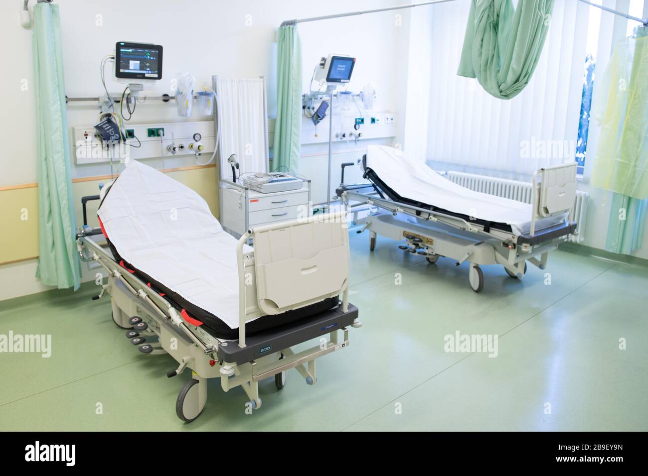 Dresden Germany 24th Mar 2020 Two Empty Hospital Beds Stand Side By Side In A Patient