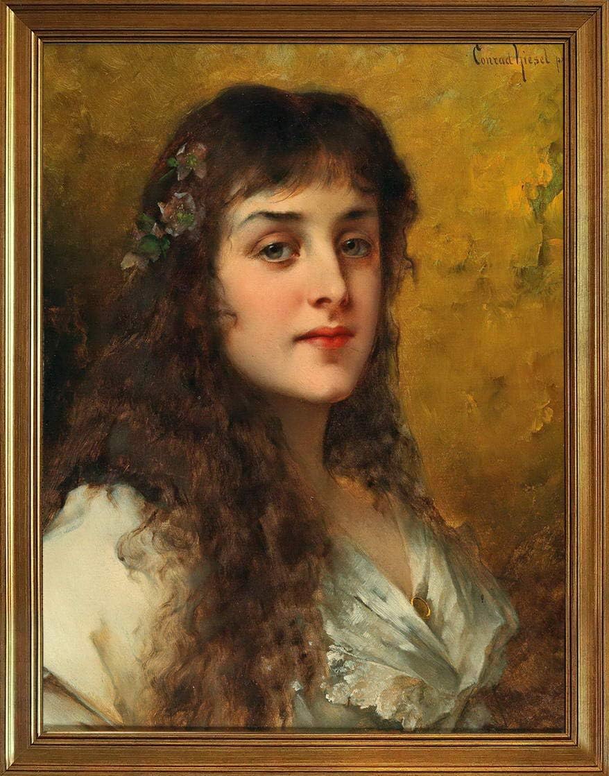 Amazon Com Berkin Arts Conrad Kiesel Classic Framed Giclee Print On Canvas Famous Paintings Fine Art Poster Reproduction Wall Decor Portrait Of A Lady With Snowdrops In Hair Jk Posters Prints