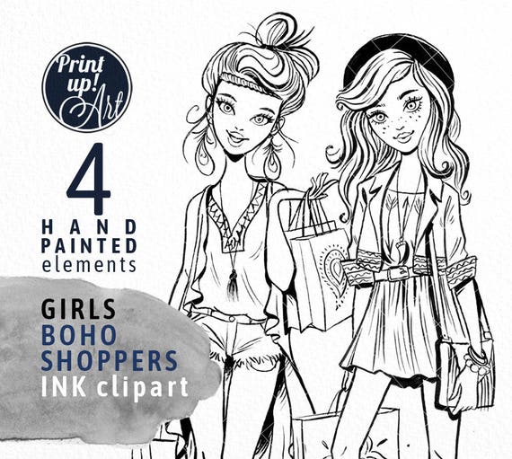 Hand Drawn Cute Cartoon Girl With Commercial Elements Painted Lovely Cartoon Girl Black And White Draft Line Png Transparent Image And Clipart For Free Download