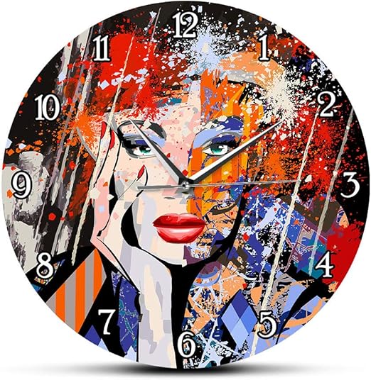 Amazon Com Guijinpeng Wall Clocks Abstract Art Fashion Lady Portrait Modern Wall Clock Painting Portrait Of A Woman Face Silent Wall Watch Interior Home Decor Silent Easy To Read Home Kitchen