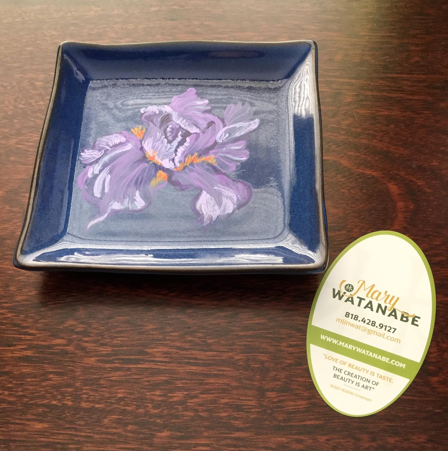 Amazon Com Purple Iris On Blue Plate Listing For 1 Hand Painted Dish Gift Ideas For Jewelry Dessert Birthday Anniversary Candies Hostess Holiday Mom Handmade