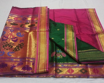 Paithani Lehenga Very Attractive Blue Color Paithani Lehenga And Pink Color Blouse With Green Color Net Dupatta Fabric Details Lehenga Light Weight Paithani Pattu Blouse Raw Silk With Machine