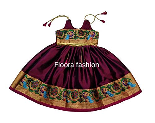 Buy Floora Fashion Baby Paithani Green Top And Pink Bottom Silk Frock 10 Year At Amazon In