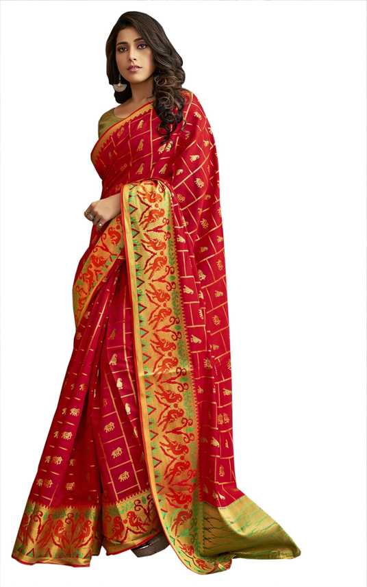 Buy Hashtag Fashion Checkered Paithani Silk Blend Jacquard Red Sarees Online Best Price In India Flipkart Com
