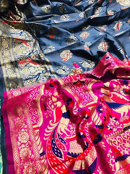 Ladies Paithani Dress Ladies Navy Blue Silk Paithani Dress Retailer From Mumbai
