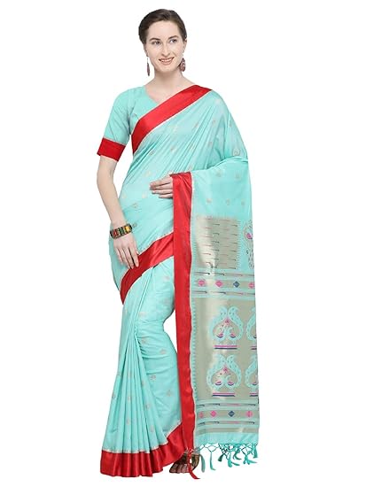 Buy Shaily Retails Women S Paithani Silk Saree Blue At Amazon In