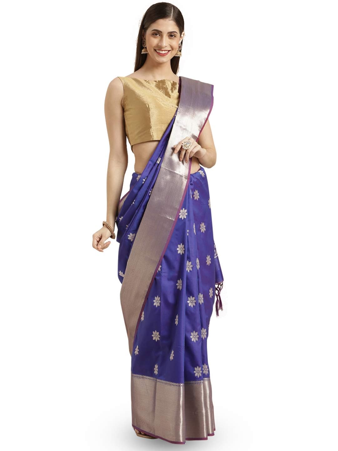 Buy Varkala Silk Sarees Women S Paithani Silk Kanchipuram Saree With Blouse Piece Blue Silver At Amazon In