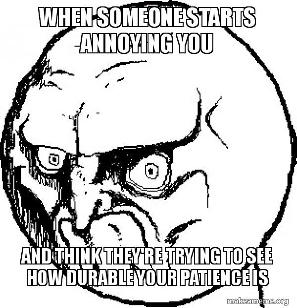 When Someone Starts Annoying You And Think They Re Trying To See How Durable Your Patience Is No Rage Face Make A Meme