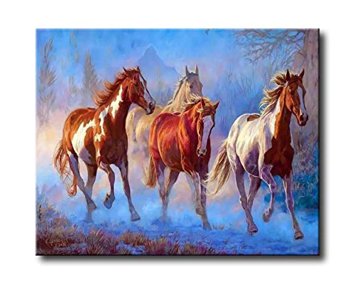Kits Bordado Diy Pintura Al Oleo Por Numero Kit Cuadro Al Oleo Para Pintar Por Numeros Dibujo Con Pinceles Decoracion De Hogar Mural Regalo Navideno 16x20 Pulgadas Caballo Nevado Sin Marco Bordado Kits