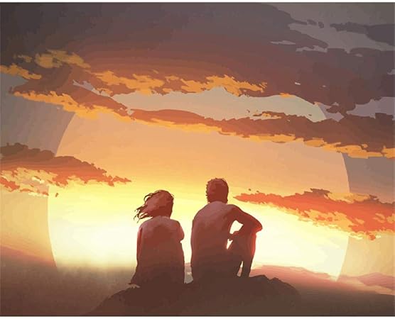 Pintar Por Numeros Adultos Pareja Mirando El Atardecer Diy Pintura Kit Facil Para Ninos Lienzo 40x50 Cm Amazon Es Hogar