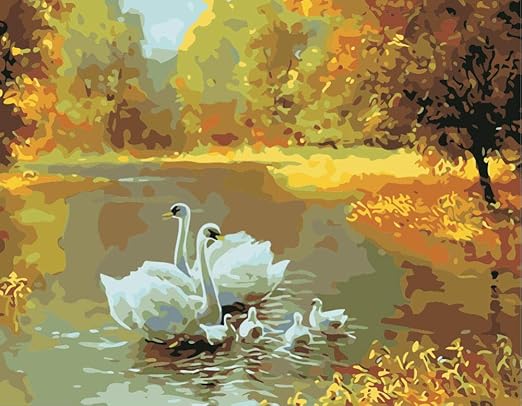 Pintar Por Numeros Adultos Paisaje De Otono Lago Un Grupo De Cisnes Blancos Regalo Para Amigo Pintura Diy With Combination Frame 40x50cm Amazon Es Hogar