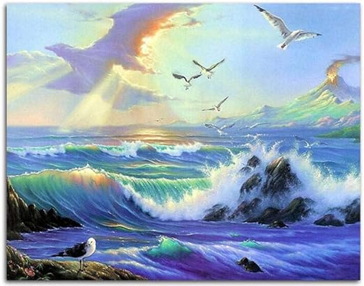 Pintar Por Numeros Para Adultos Paisaje Del Marina Cuadro De Pintura Por Numeros Adultos Y Para Ninos Lienzo Pre Dibujado Con Numeros Para Pintar Con Pinceles Y Colores Brillantes Amazon Es