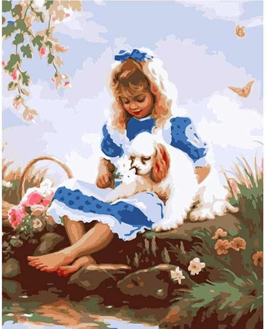 Hua5d Diy Pintar Por Numeros Adultos Kit Sin Marco Cute Girl With Dog Handmade Paint Canvas Regalos De Vacaciones Para Ninos 2 40x50cm Amazon Es Hogar