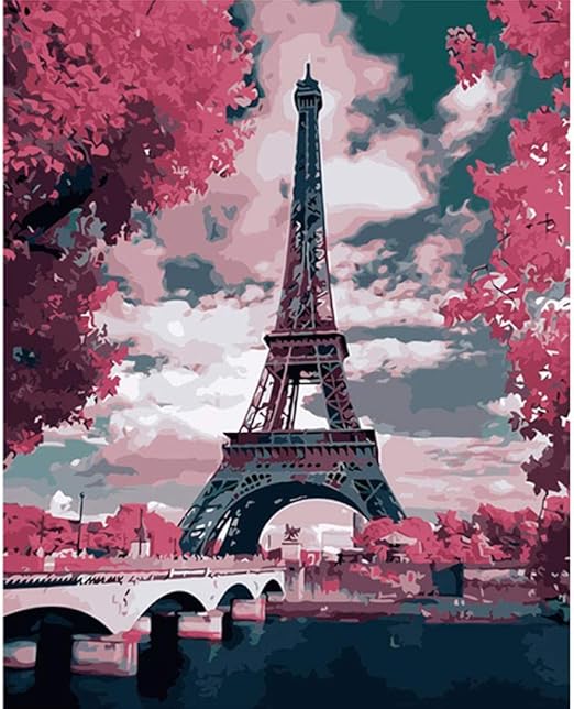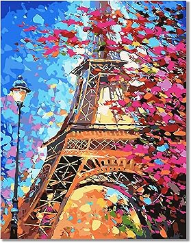 Wonzom Diy Pintura Por Numeros Kit Pintar Por Numeros Sobre Lienzo Para Adultos Principiantes Hermoso Torre Eiffel Paisaje 16 20 Pulgadas Sin Marco Amazon Es Hogar