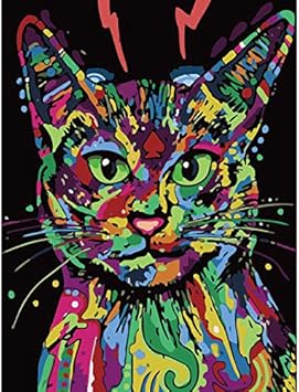 Pintar Por Numeros Adultos Ninos Diy Pintura Gato De Colores 40x50cm Amazon Es Hogar