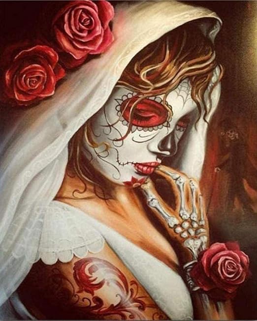 Pintar Por Numeros Para Adultos Ninos Craneo Novia 16x20 Pulgadas Lienzo Lienzo Acrilico Diy Numero Kits De Pintura Pintado A Mano Pintura Al Oleo Arte De La Pared Decoracion Regalos Amazon Es Hogar