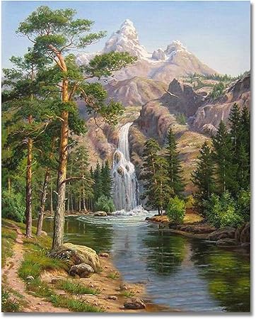Boshun Pintar Por Numeros Para Adultos Ninos Pintura Por Numeros Con Pinceles Y Pinturas Decoraciones Para El Hogar Cascada 16 20 Pulgadas Sin Marco Amazon Es Hogar