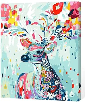 Diy Pintura Pintar Por Numeros Adultos Ninos Ciervo Pintado Marco De Madera 40x50cm Amazon Es Hogar