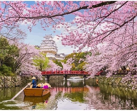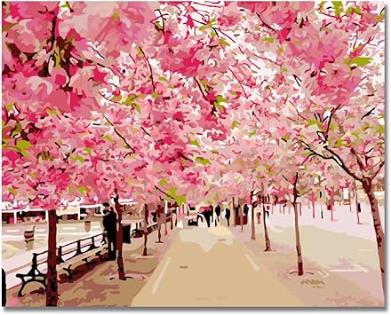 Pintar Por Numeros Adultos Foso Flor De Cerezo Diy Pintura Kit Facil Para Ninos Lienzo 40x50 Cm Amazon Es Hogar