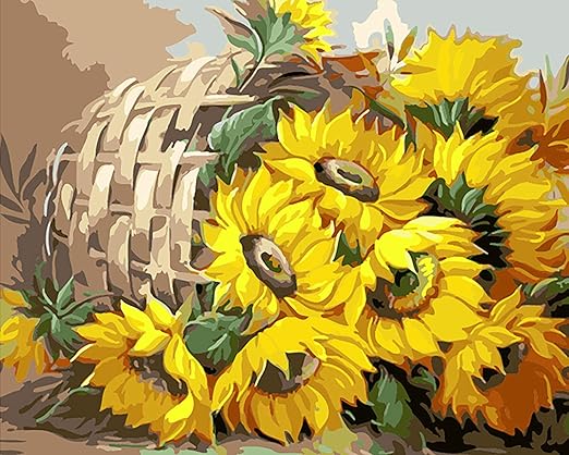 Mileelife Pintar Por Numeros Para Ninos Adultos Kit De Pintura Al Oleo Diy Principiante Cesta Girasol 1166 Amazon Es Hogar