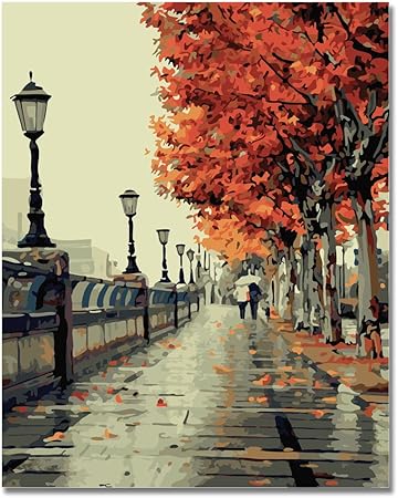 Boshun Pintar Por Numeros Para Adultos Ninos Pintura Por Numeros Con Pinceles Y Pinturas Decoraciones Para El Hogar Otono Romantico 16 20 Pulgadas Sin Marco Amazon Es Hogar