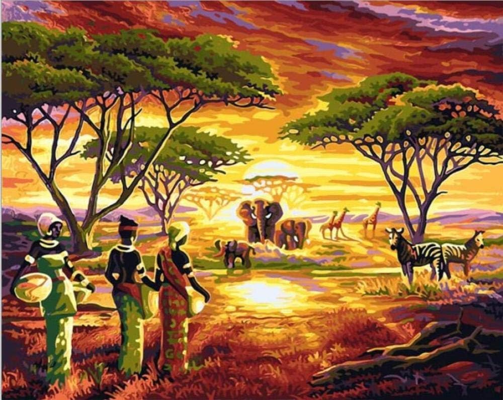 Pintar Por Numeros Elefantes Y Puesta De Sol Pinta Un Cuadro