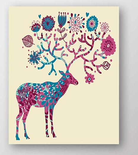 Amazon Com Jasiohcds 4050 Pintura Digital Pintada A Mano Diseno De Ciervo Abstracto Arte Manualidades Y Costura